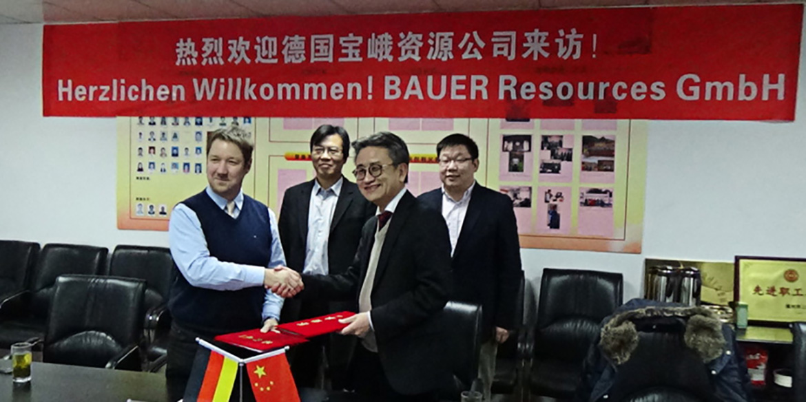 2015年1月20號,德國寶峨(BAUER)資源國際業(yè)務(wù)副總Dr. Breuer和寶峨資源項目經(jīng)理、熱脫附專家Dr. Richter到我公司寧波項目現(xiàn)場參觀,許榮祺總經(jīng)理、段德超博士和陳寶博士陪同參觀、講解。