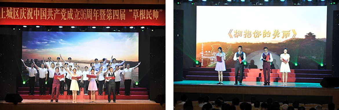 為迎接黨的96歲生日,2017年6月30日上午,由中共杭州市上城區(qū)委員會主辦的上城區(qū)慶祝中國共產(chǎn)黨成立96周年暨第四屆“草根名師”講堂在上城區(qū)政府3樓大禮堂隆重舉行。區(qū)委對先進基層黨組織、優(yōu)秀共產(chǎn)黨員、優(yōu)秀黨務工作者進行了表彰,整臺盛會通過《擔當職責》、《奉獻之美》、《向你看齊》與《創(chuàng)新之力》四個篇章,弘揚了普通黨員甘于奉獻、全心全意為人民服務的崇高精神。