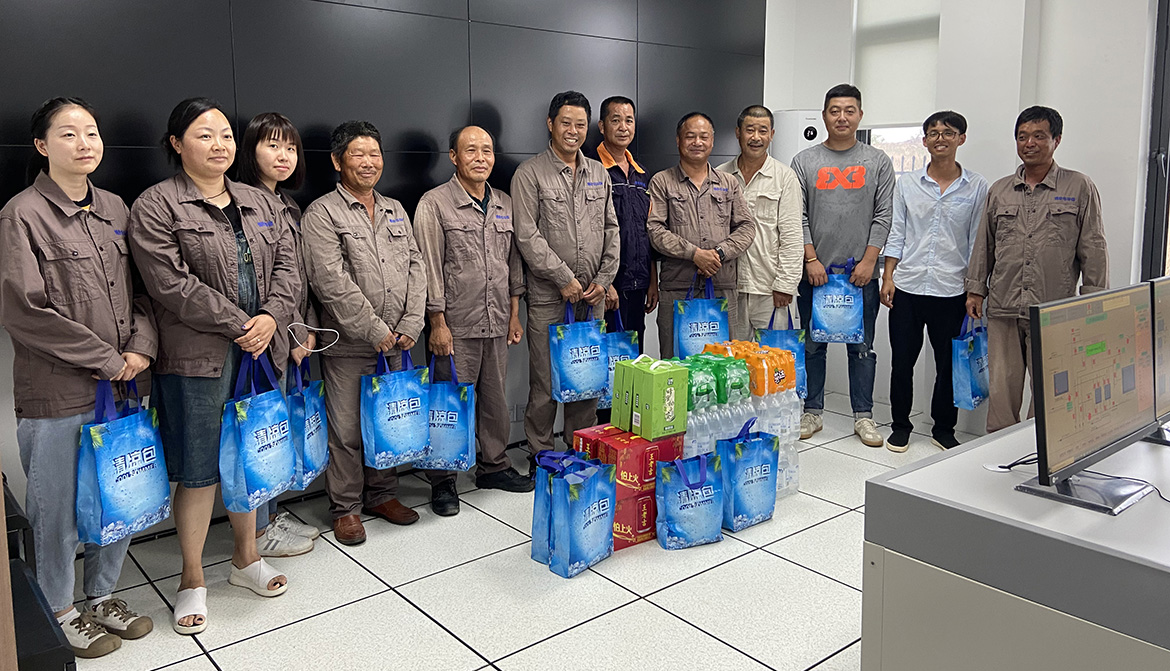 近期氣溫居高不下,室外溫度已超40°,為了更好地讓員工開展日常工作,關愛員工的生活與工作。黨支部書記、董事長王衛民、工會主席張莉及中層干部代表給一線員工帶去問候,讓大家感受公司濃濃的關懷和夏日里的清涼。