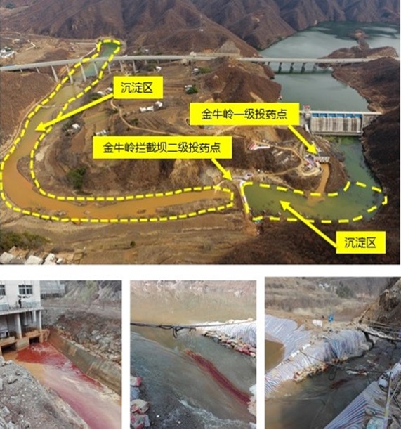 筑壩攔截。2月15日開始,欒川縣人民政府組織在伊河受影響的35公里干流河道分段設置攔截壩、開挖臨時沉淀池,在攔截污染水體、調節下泄流量、為投藥降污創造有利條件等方面發揮重要作用。